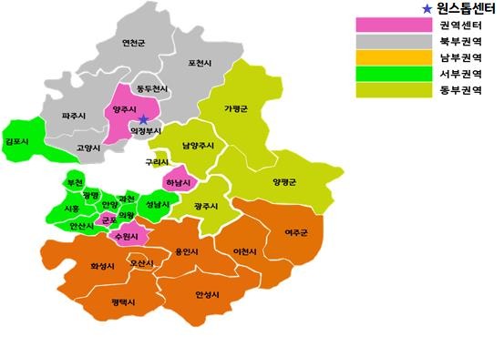 지역센터 15곳(용인, 평택, 화성, 안성, 광주, 구리, 남양주, 안산, 부천, 안양, 시흥, 김포, 고양, 파주, 의정부)도 기본적인 상담 서비스를 제공한다.