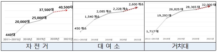 자전거 확대와 함께 대여소 250개소, 거치대 3,000개도 추가 설치한다.