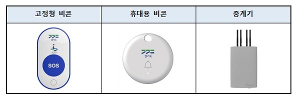 비콘(Beacon)은 근거리에 있는 스마트기기를 자동으로 인식해 데이터를 전송할 수 있는 무선 통신장치다. ‘비콘 비상벨 긴급 신고시스템’은 비콘 단말기에 이름, 주소, 핸드폰번호 등 사용자 개인정보를 사전에 등록하고, 위급 상황 때 비상벨 버튼만 누르면 메쉬 네트워크(Mesh Network) 방식으로 연결된 무선주파수(RF) 망, 와이파이(WiFi) 망 또는 핸드폰을 통해 자동으로 신고가 가능하며, 고정형과 휴대용 2가지 유형으로 구성돼 있다.