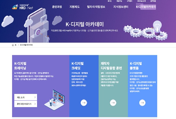이제부터 직업훈련포털(HRD-Net, https://hrd.go.kr)에 접속하면 ‘K-디지털 아카데미’ 서비스를 통해 정부가 지원하는 디지털·신기술 훈련정보를 만날 수 있다.