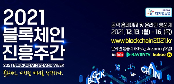 디지털 뉴딜의 일환으로 ‘2021 블록체인 진흥주간’ 행사가 13일부터 16일까지 4일동안 온라인에서 개최한다.