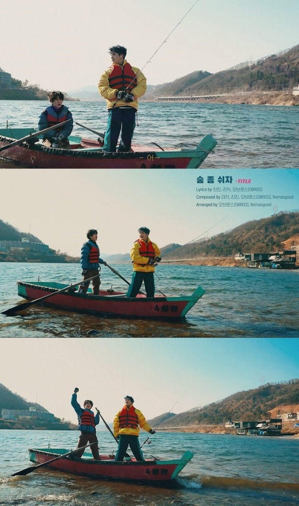먼저 타이틀곡 ‘숨 좀 쉬자’는 펑키 댄스 팝 장르답게 레트로한 사운드와 트렌디한 신스로 귓가를 사로잡는다. 특히 “숨 좀 쉬자”, “나 홀로 댄스 타임” 등의 가사로 중독성은 물론, 현 시국에 누구나 공감할 수 있는 내용을 노랫말로 전하며 진진&라키의 명랑한 에너지를 담아냈다. 두 사람은 항상 시간에 쫓기는 현대인들에게 ‘숨 좀 쉬자’라는 메시지를 건네며 휴식 같은 시간을 선사할 예정이다.