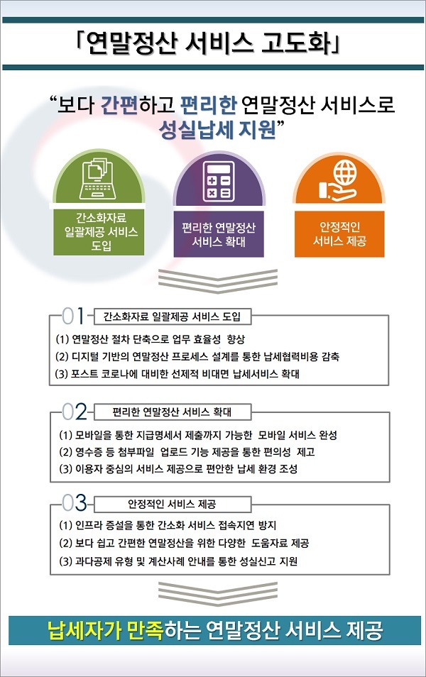 이 밖에도 국세청 누리집(www.nts.go.kr)에서는 연말정산에 필요한 정보를 빠르게 찾아볼 수 있도록 다양한 정보를 제공하고 있다.