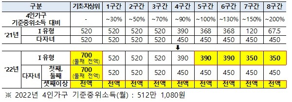 또한 학자금 지원 대상 선정의 합리성을 높이기 위해 올해부터 다자녀 가구에는 소득인정액(월)에서 셋째 이상인 자녀 1인당 40만 원을 공제한다.
