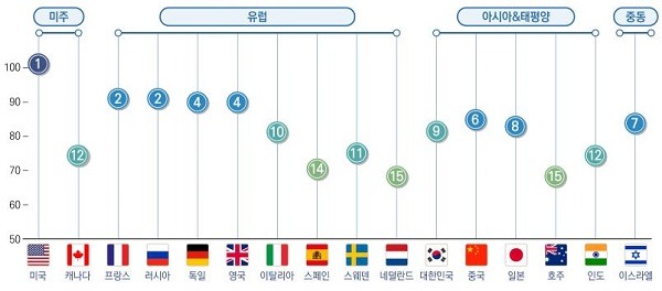 ◆ 세계 단독 9위 기록한 국내 국방과학기술 수준