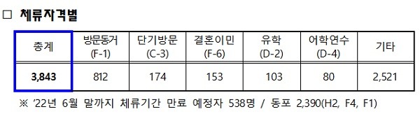 이번 조치는 지난달 1월 31일 기준으로 집계된 장·단기 국내 체류 우크라이나인 3843명을 대상으로 실시된다.