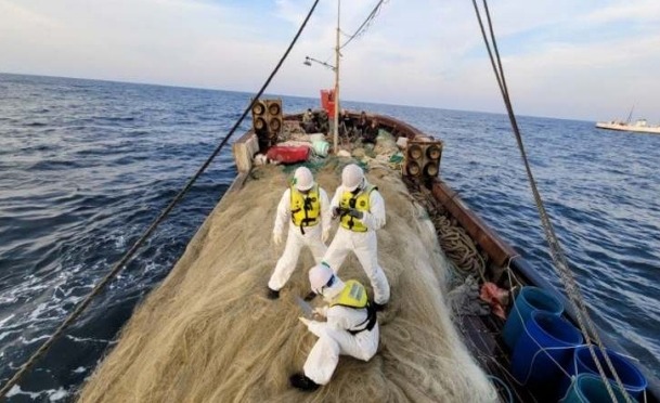 남해어업관리단은코로나-19국내유입방지를위해해상에서나포한중국 어선을대상으로추가적인조사를진행하고있으며,혐의가확인되면관련 법률에따라담보금부과등의처분을할예정이다.