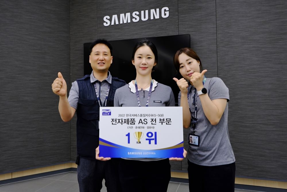 삼성전자서비스가 30일 한국표준협회가 발표한 ‘2022 한국서비스품질지수 (KS-SQI)’에서 작년에 이어 올해도 가전, 휴대전화, 컴퓨터 AS 품질 전 부문 1위를 석권했다.