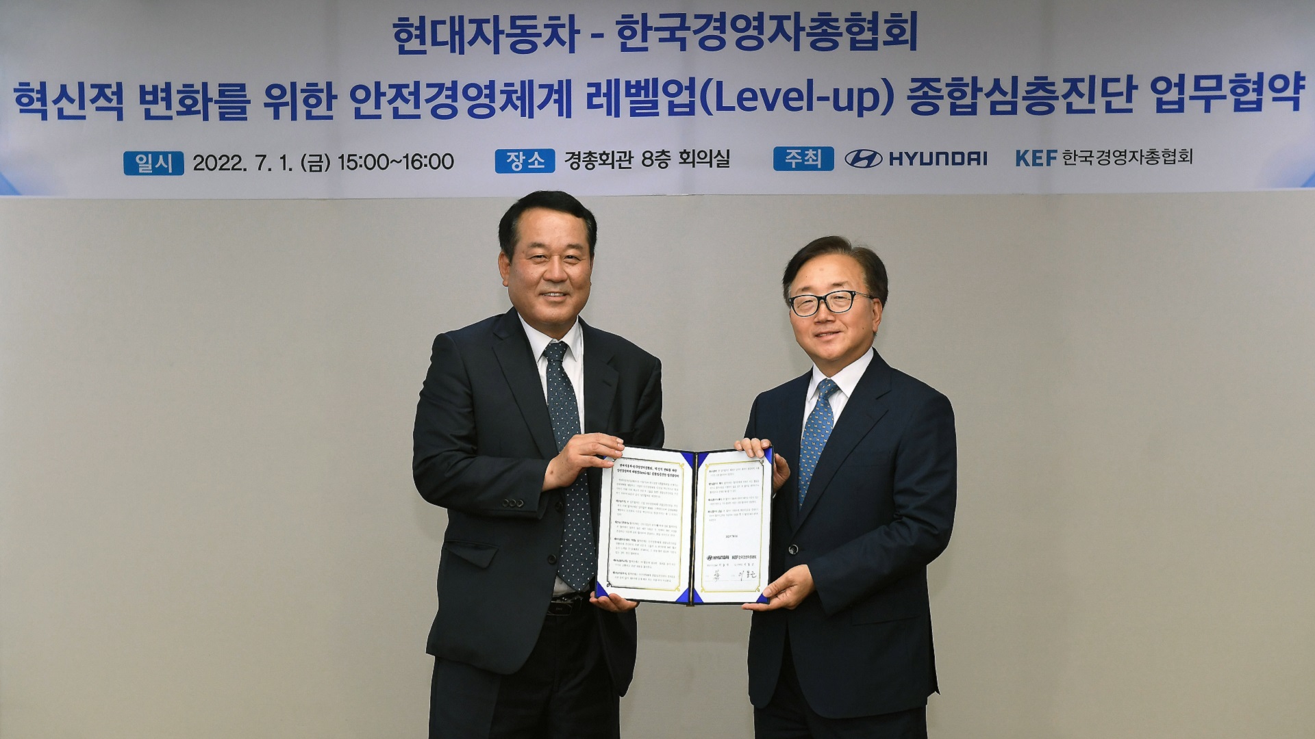 현대자동차는 1일(금) 한국경영자총협회와 안전경영체계 종합심층진단을 위한 업무협약(MOU)을 체결했다.