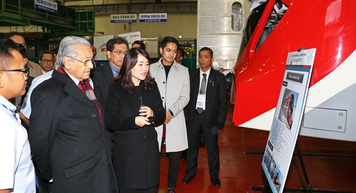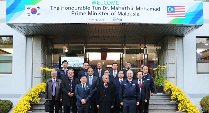 한-아세안 특별정상회의를 위해 방한중인 마하티르 총리는 26일 현대로템 창원공장에서 말레이시아 MRT 2호선 전동차 생산현장을 둘러보고 국내 최초의 분산식 고속열차(EMU-250)를 직접 시승했다. 이후 마하티르 총리는 현대로템의 방산공장으로 이동해 K1 전차와 차륜형장갑차의 주행모습을 직접 살펴보는 시간을 가졌다.