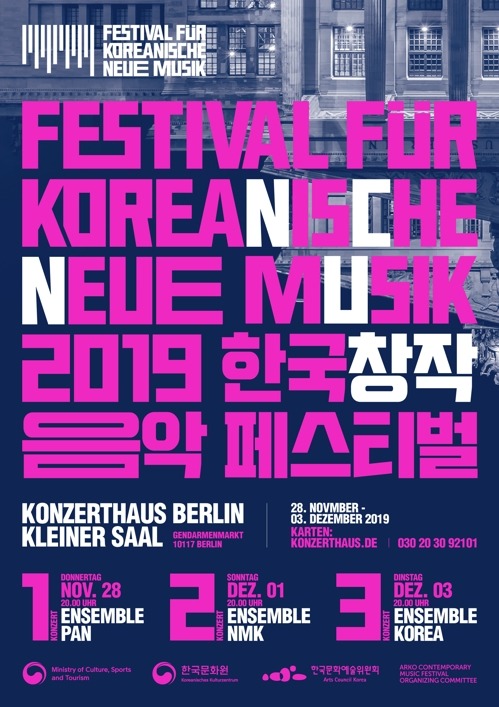 주독일 한국문화원은 제1회 한국창작 음악 페스티벌을 아창제(ARKO 한국창작음악제 추진위원회)와 공동 개최로 오는 28일부터 3일간 베를린 최고 양대 연주홀 중 하나인 베를린 콘체르트하우스 체임버홀에서 개최한다.