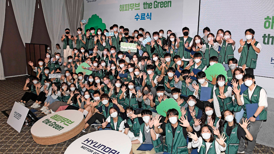 현대자동차그룹은 31일(수) 더케이호텔서울(서울 서초구 소재)에서 현대자동차그룹 양진모 부사장, 노점환 한국관광공사 본부장, 손영임 국립공원공단 이사 등 주요 관계자들과 대학생 단원 100명이 참석한 가운데 '해피무브 더 그린 수료식'을 가졌다고 밝혔다.