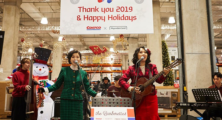 현대카드가 코스트코와 함께 연말 크리스마스를 앞두고 코스트코 매장을 찾은 고객들에게 깜짝 미니 콘서트를 선물했다.