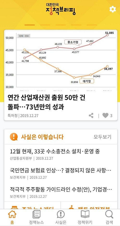 ‘대한민국 정책브리핑’ 앱은 30일부터 안드로이드 기반의 ‘구글 플레이 스토어’에서 내려 받을 수 있으며, ‘애플앱스토어’에서는 내년 1월 이후에 이용할 수 있다.