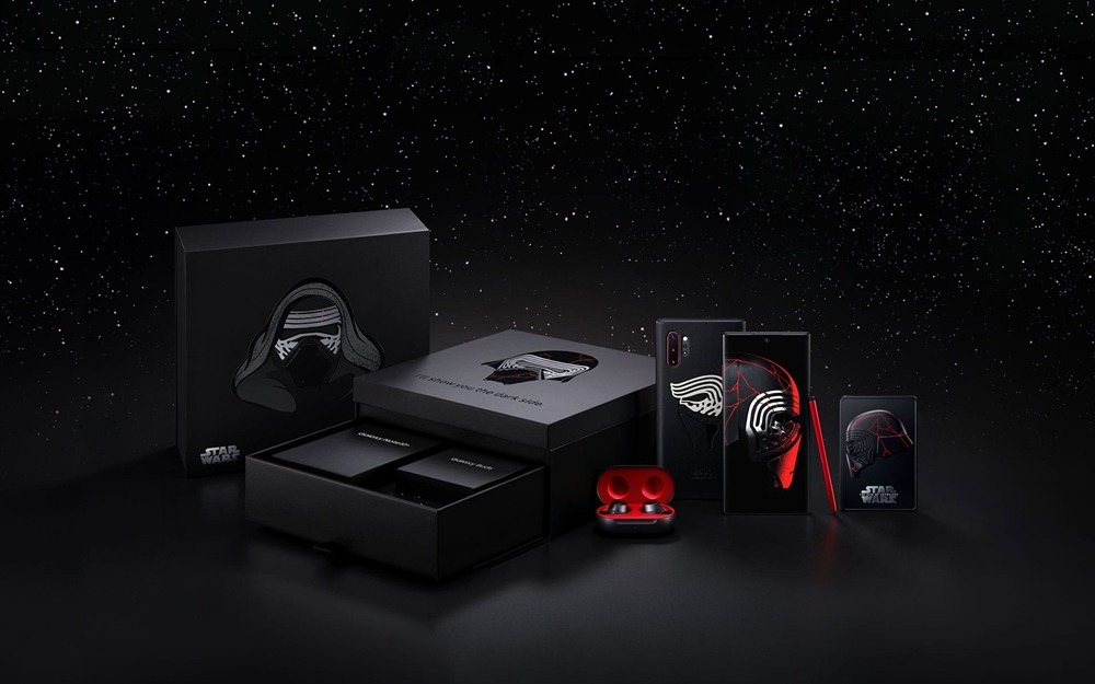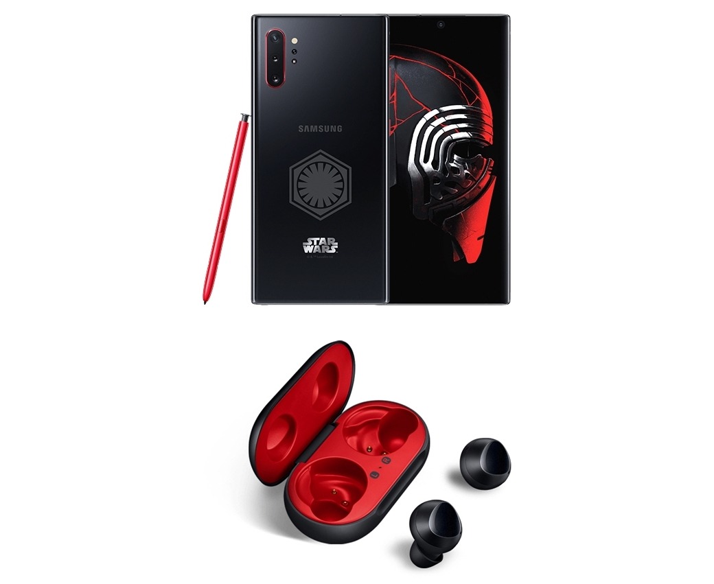 ‘갤럭시 노트10+ 5G 스타워즈 스페셜 에디션’은 스타워즈 등장인물 ‘카일로 렌’에게 영감을 받은 디자인과 블랙과 레드 색상의 조합으로 강렬한 인상을 준다. ‘갤럭시 노트10+ 5G’에는 스타워즈 배경화면과 아이콘, 벨소리 등 다양한 전용 콘텐츠가 탑재되었으며, 특히 레드 컬러를 입은 S펜은 넣고 뺄 때마다 스타워즈의 광선 검 사운드가 흘러나와 눈길을 끈다. 또한 고급스러운 케이스에 담긴 ‘갤럭시 버즈’와 카일로 렌의 헬멧이 돋보이는 가죽 커버, 콜렉터를 위한 특별한 아이템도 제공된다.