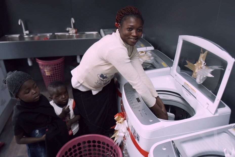 LG전자가 나이지리아에서 물과 전기가 부족해 빨래하는 데 어려움을 겪고 있는 지역 주민을 위한 무료 세탁방을 열었다.