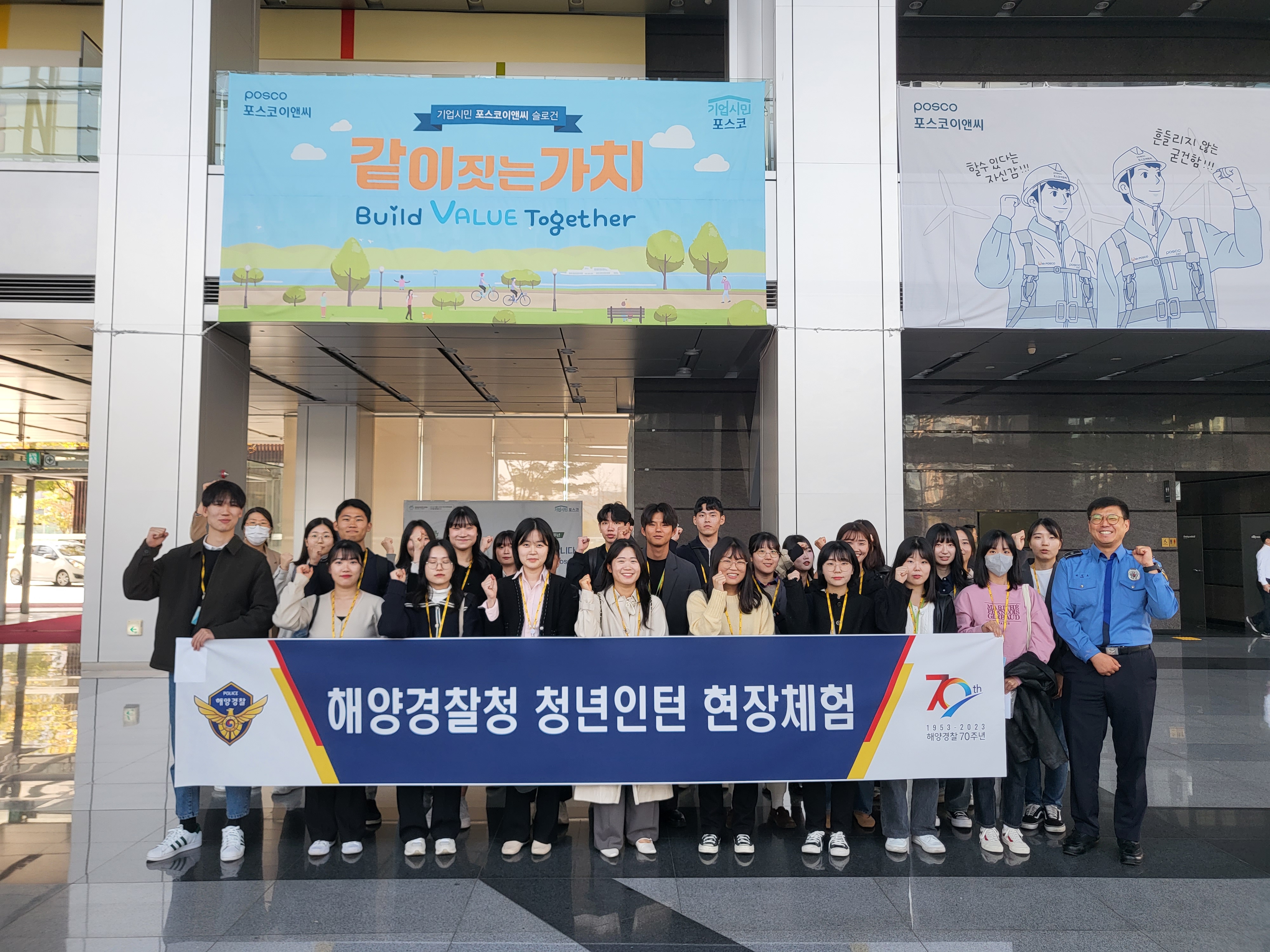 해양경찰청은 “해양경찰청에서 근무하고 있는 청년인턴의 진로 탐색 기회 제공 및 사기진작을 위해 운영지원과 직원 일동과 해양경찰청에 근무 중인 청년인턴 30명이 포스코이앤씨를 방문했다”고 27일 밝혔다.