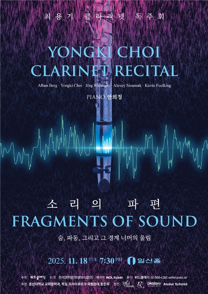 이번 공연에서 풍부한 표현력과 지치지 않는 열정으로 주목받는 클라리네티스트 최용기가 현대음악의 깊이와 다양성을 조명한다. 알반 베르크(Alban Berg)와 요르크 비트만(Jörg Widmann) 등 20세기와 21세기의 대표적 작곡가들의 작품을 중심으로 구성됐으며, 특히 최용기 자신의 신작 ‘Fragments of Sound’가 세계 초연으로, 케빈 펠킹(Kavin Foelking)의 ‘Fused’가 한국 초연으로 공개된다.