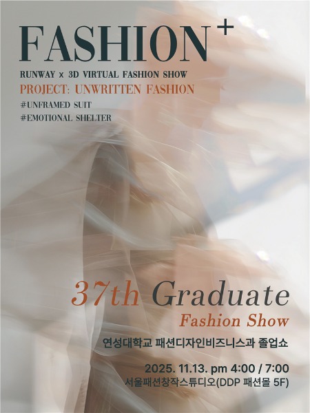 연성대학교 패션디자인비즈니스과가 11월 13일 오후 4시와 7시 서울 동대문디자인플라자(DDP) 서울패션창작스튜디오 5층에서 제37회 졸업패션쇼를 연다.