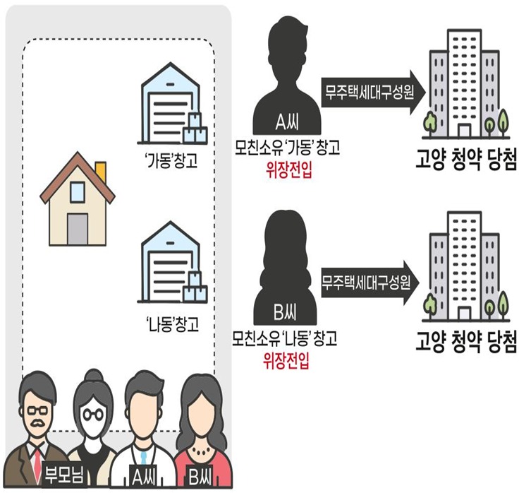 특히, 이번 현장점검 시 주민등록상 등재(위장전입으로 의심)된 부모를 부양가족에서 제외하고 청약을 신청한 사례도 다수 확인됐다.