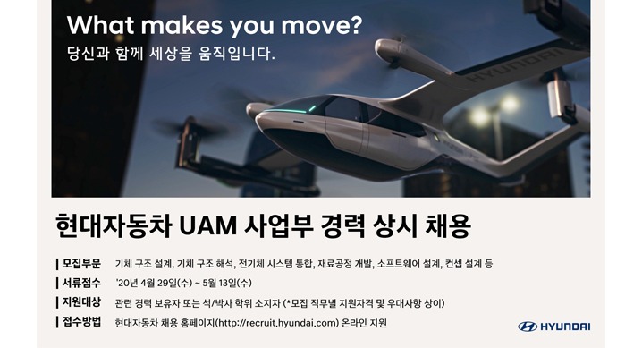 도심 항공 모빌리티 분야의 채용은 국내에서 현대자동차가 처음이다.