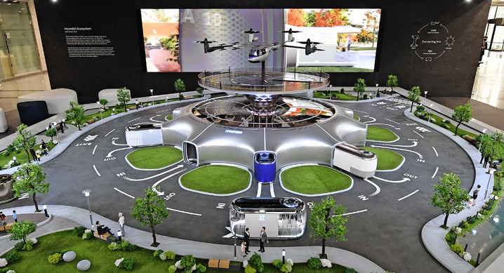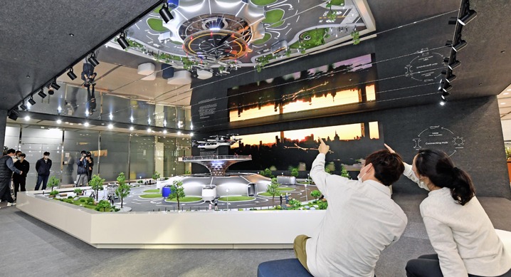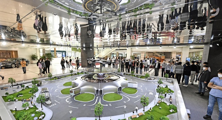 현대자동차 양재 본사 사옥에 UAM(Urban Air Mobility : 도심 항공 모빌리티), PBV(Purpose Built Vehicle : 목적 기반 모빌리티), Hub(모빌리티 환승 거점) 등 미래 모빌리티 솔루션이 등장했다.