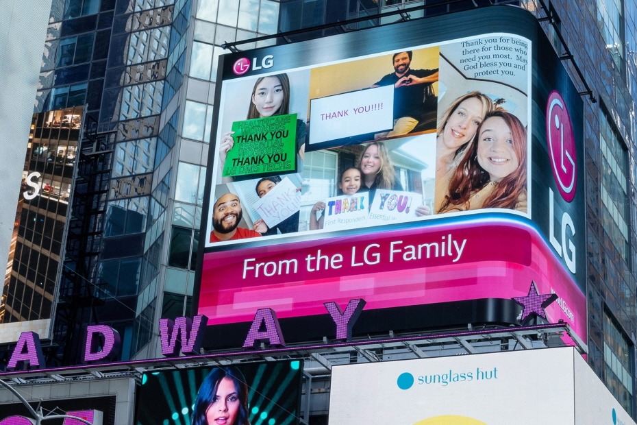 LG전자가 미국 뉴욕에서 코로나 19 극복을 위해 헌신하는 많은 분들에게 고마운 마음을 전하고 있다.