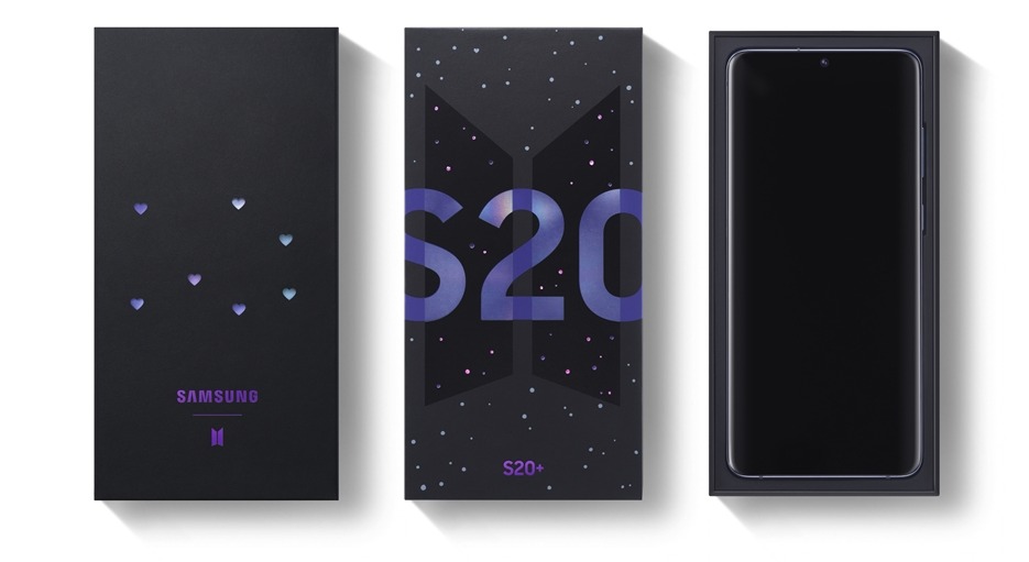 방탄소년단 멤버들을 상징하는 7개의 퍼플 하트가 디자인된 ‘갤럭시 S20+ BTS 에디션’ 패키지에는 스마트폰을 꾸밀 수 있는 BTS 멤버들의 스티커와 소장용 포토카드가 포함된다. ‘갤럭시 S20+ BTS 에디션’은 국내에서 5G 모델로 출시되며, 가격은 139만 7천원이다.