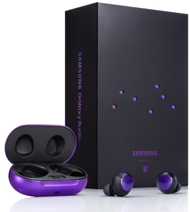 ‘갤럭시 버즈+ BTS 에디션’에는 방탄소년단 전용 테마를 설치해 사용할 수 있는 버즈+ 스마트 케이스와 소장용 포토카드가 포함되어 있다. 가격은 22만원이다. ‘갤럭시 버즈+ BTS 에디션’은 6월 15일부터 위버스샵과 전국 삼성디지털프라자에서 사전 구매가 가능하다. ‘갤럭시 버즈+ BTS 에디션’을 사전 구매한 고객에게는 선착순으로 위버스샵에서는 무선 충전기 BTS 에디션과 렌티큘러 카드를, 삼성디지털프라자에서는 방탄소년단 브로마이드를 제공한다.