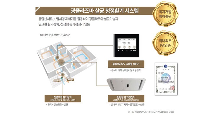 주거용 환기시스템에 바이러스 및 유해물질 제거 기술을 도입하여 PA 인증을 획득한 것은 현대건설의 광플라즈마 살균·청정 환기시스템이 처음이며, 현재까지도 환기분야에서는 유일한 PA 인증을 확보한 독보적인 기술이다.
