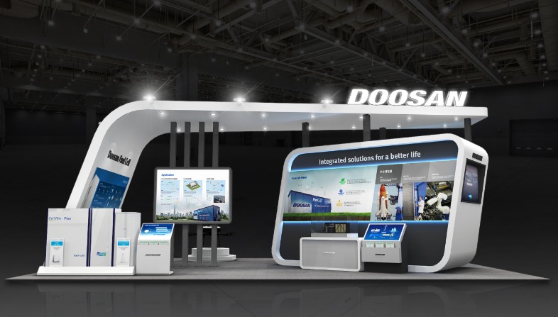 ㈜두산 퓨얼셀파워BU는 10kW 건물용, 1kW 주택용 고분자전해질형 연료전지(PEMFC)를 전시한다. 또한 두산퓨얼셀은 440kW 규모의 발전용 인산형 연료전지(PAFC)를 제품 모형과 다채로운 영상, 그래픽 등을 통해 알기 쉽게 소개한다.