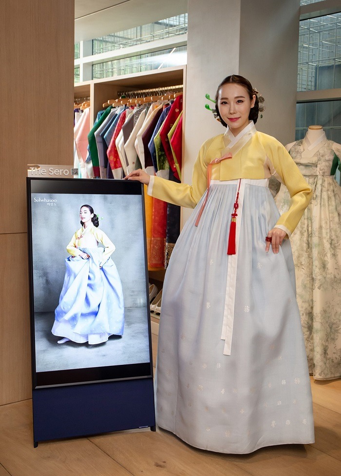 고객들은 이곳에서 43인치 ‘더 세로’의 꽉 찬 세로 화면을 통해 체험해보고 싶은 한복을 고를 수 있다.