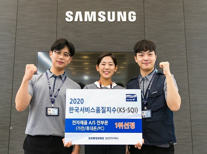 삼성전자서비스가 한국표준협회(KSA)에서 주관하는 ‘2020 한국서비스품질지수(KS-SQI)’ 조사에서 전자제품 A/S 전 부문 1위로 선정됐다.