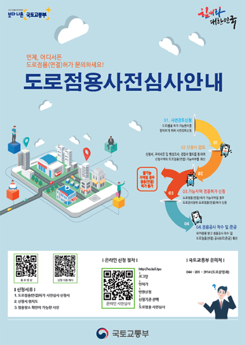 국토교통부는 도로점용허가 사전심사제에 QR코드, 애플리케이션(앱) 등 비대면 기술을 도입해 운영한다고 1일 밝혔다.