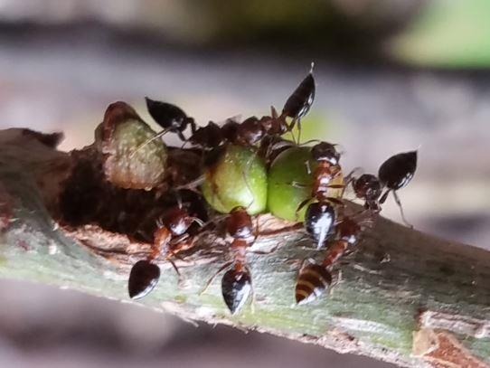 ‘쌍꼬리부전나비’가 터를 잡고 살아가기 위해서는 먹이식물인 꽃뿐만 아니라 고목과 공생 개미(마쓰무라꼬리치레개미)의 존재 여부가 굉장히 중요하다. ‘쌍꼬리부전나비’는 소나무와 벚나무 등 고목에 알을 낳는데, 이 고목에 둥지를 틀고 사는 개미(마쓰무라꼬리치레개미)가 나비의 애벌레를 돌본다.