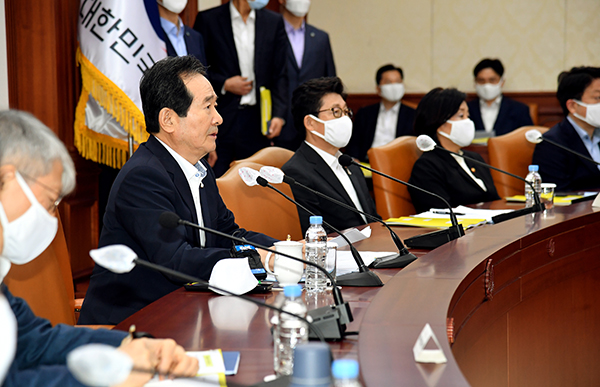 정 총리는 회의에서 “코로나19는 세계사적인 변곡점이 될 것”이라며 “변화에 대응하고 위기를 기회로 바꿔 새로운 경제사회 질서를 주도하는 국가로의 전환은 더 이상 늦출 수 없는 시대적 과제가 됐다”고 말했다.
