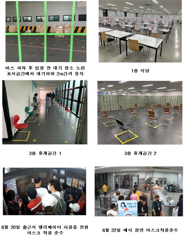 이 내용에 따르면 150여명의 확진자가 발생한 쿠팡 부천물류센터는 식당과 휴식공간 등에서의 거리두기가 지켜지지 않았고, 신발과 모자 등을 공용으로 사용하는 등 방역수칙이 지켜지지 않았다.