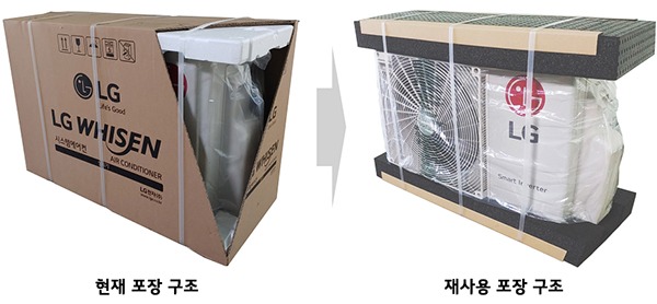 엘지전자는 시스템 에어컨 실외기를 소비자에게 운송할 때 한번 사용하는 종이 상자와 발포 스티로폼 대신 재사용이 가능한 재질의 플라스틱을 사용해 연간 종이 사용량을 85톤 줄일 계획이다.