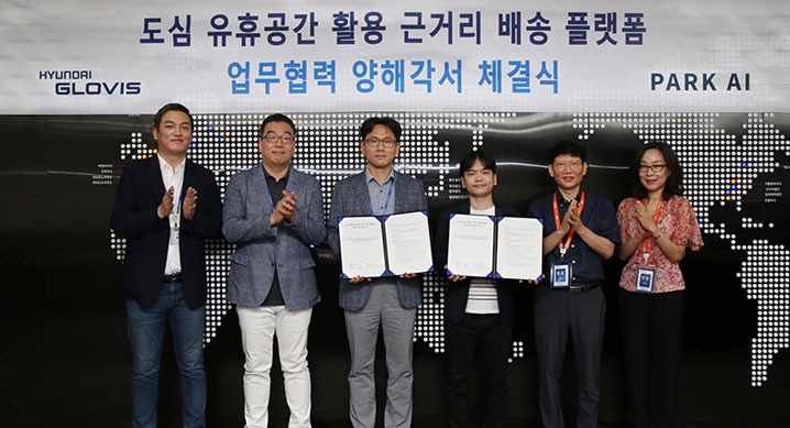글로벌 SCM 전문기업 현대글로비스는 신생 스타트업 ‘파크AI’의 ‘도심 유휴공간 활용 근거리 배송 플랫폼’(이하 근거리 배송 플랫폼) 사업을 지원하는 업무협약식을 가졌다고 9일 밝혔다.