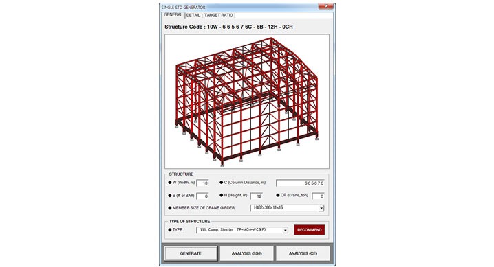 통상 한 동의 철골 건축물 구조설계를 위해서는 약 3~4일이 필요하지만, 현대엔지니어링이 개발한 철골구조물 자동 설계 프로그램은 설계자가 건물의 크기, 하중, 형태 등 기본적인 설계 조건만 입력하면 10분 이내로 구조설계가 가능한 획기적인 자동 설계 시스템이다.