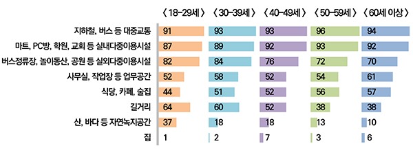 한편 정 본부장은 “최근 마스크 착용 관련 인식조사 결과, 코로나19 전파위험성이 높은 식당, 카페, 술집에서의 마스크 착용 필요성에 대한 인식이 낮아서 마스크 착용에 대한 잘못된 인식이 존재하는 것을 확인할 수 있었다”고 설명했다.
