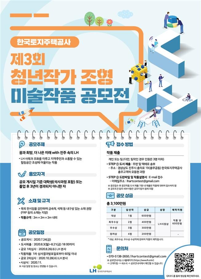 8.3(월)~8.21(금)까지 접수 후 10개 수상작 발표, 10월 LH본사 조각공원에 설치