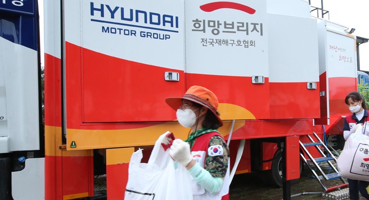 뿐만 아니라 현대자동차그룹은 수해 지역에 긴급 지원단을 파견하고 기본 생필품을 지원하며, 수해를 입은 이재민들의 옷가지 등을 신속하게 정리하기 위해 세탁구호차량을 투입해 무료 세탁·건조 서비스도 제공한다.