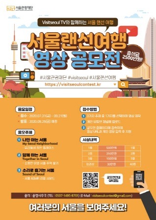서울시와 서울관광재단(대표이사 이재성)은 서울관광 공식 유튜브 채널인 비짓서울TV(youtube.com/visitseoul)를 통해 '서울 랜선 여행' 영상 공모전을 9월 21일까지 진행한다.