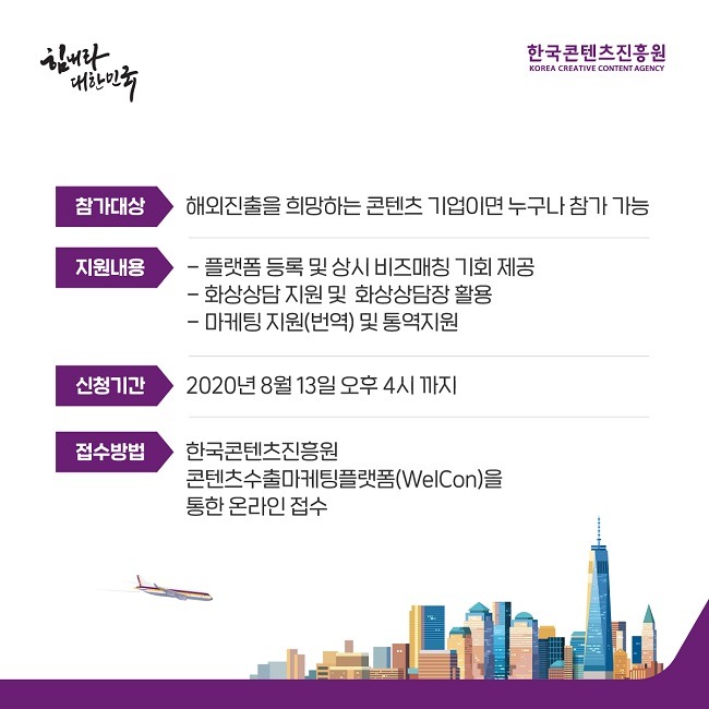 코로나19로 해외진출이 어려운 국내 콘텐츠 기업과 300여 해외 바이어 매칭 지원