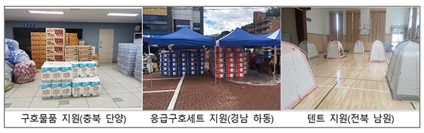 또한 구호지원기관과 지방자치단체도 응급구호세트, 취사구호세트 등 16만여 점을 지원하는 등 총 20만여 점의 구호물품을 이재민들에게 전달했다.