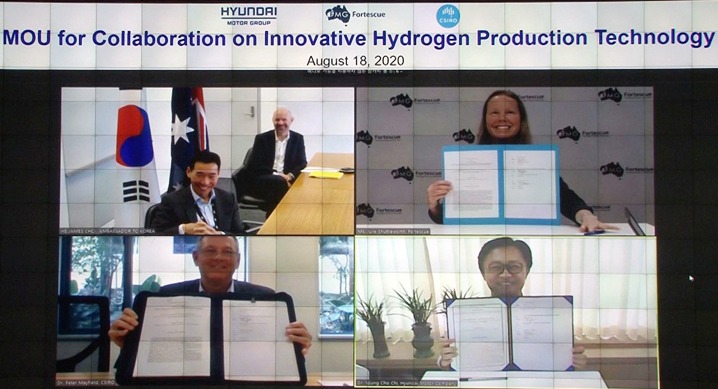 현대자동차는 호주 최대의 종합 연구기관인 호주연방과학산업연구기구 (Commonwealth Scientific and Industrial Research Organisation, 이하 CSIRO), 세계 4위의 철광석 생산업체 포테스큐(Fortescue Metal Group Ltd, FMG)와 혁신적 수소 생산 기술 개발을 위한 MOU를 체결했다고 20일(목) 밝혔다.