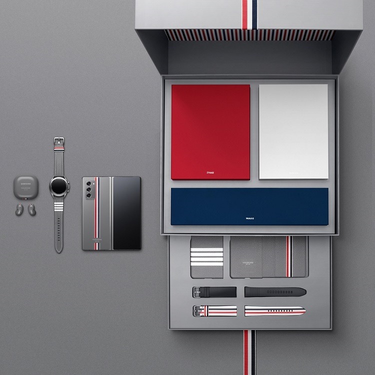 ‘갤럭시 Z 폴드2 톰브라운 에디션’ 패키지는 ‘갤럭시 Z 폴드2’뿐 아니라 톰브라운의 상징적인 디자인 요소가 가미된 ‘갤럭시 워치3’ 41mm 모델, ‘갤럭시 버즈 라이브’가 포함된다.