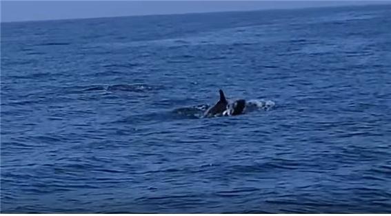 다도해해상 거문도에서 흑범고래 길이 4m 추정 어미개체와 1m 내외 새끼개체 200여 마리 이동 모습 촬영