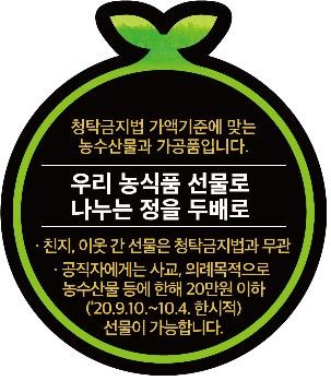 권재한 농식품부 유통소비정책관은 “농가의 경영안정과 소비자의 장바구니 부담이 최소화될 수 있도록 성수품 수급관리에 최선을 다하겠다”며 “코로나19에 따른 경제적 어려움 극복의 일환으로 9월 10일부터 10월 4일까지 청탁금지법상 농축수산 선물 상한액이 기존 10만 원에서 20만 원으로 상향되는 만큼 추석 명절의 뜻깊은 선물로 우리 농축산물을 많이 활용해 주시길 바란다”고 밝혔다.